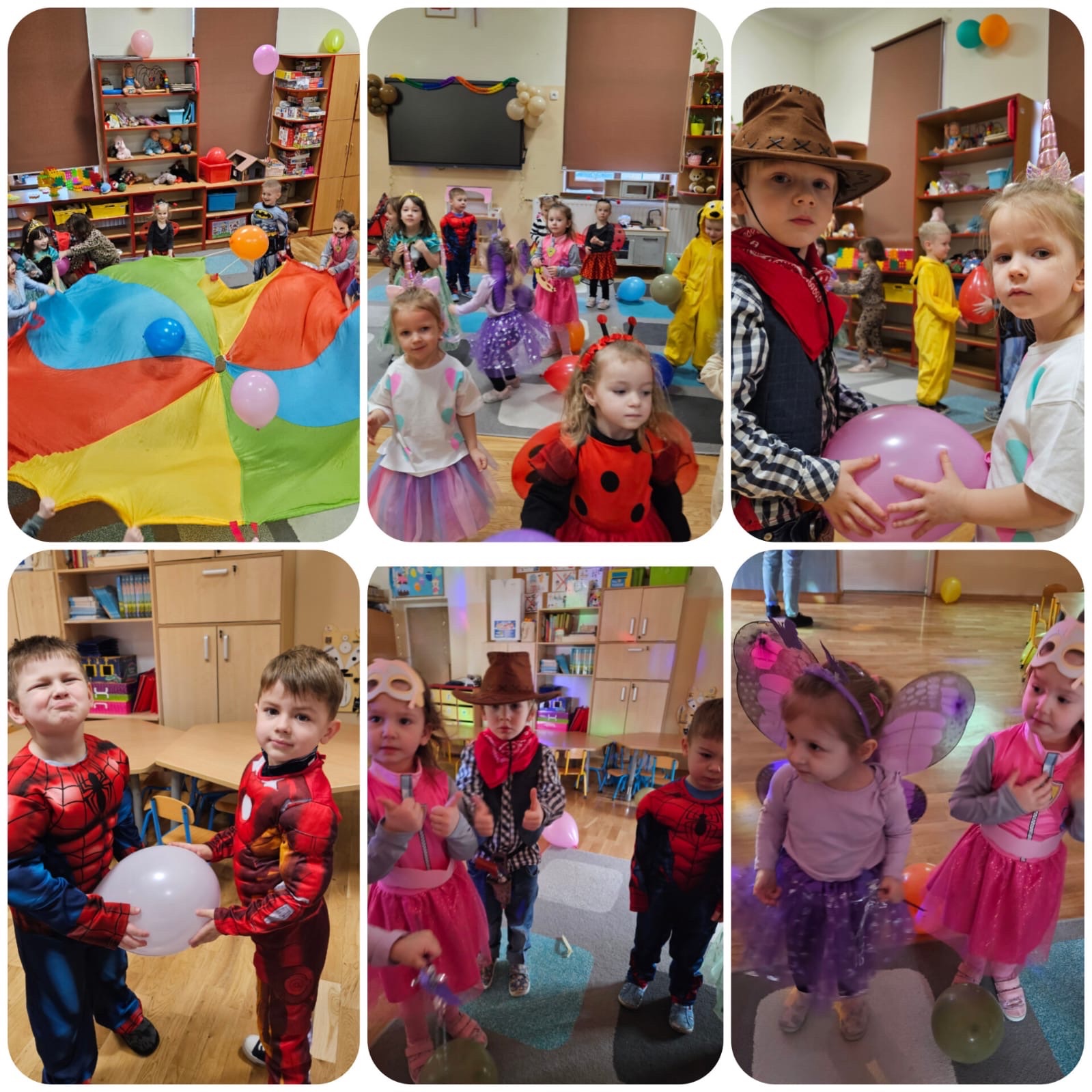 We wtorek w grupie Tygrysków odbyła się radosna zabawa karnawałowa. Dzieci przyszły w pięknych, kolorowych strojach, a przy dźwiękach muzyki bawiły się doskonale.