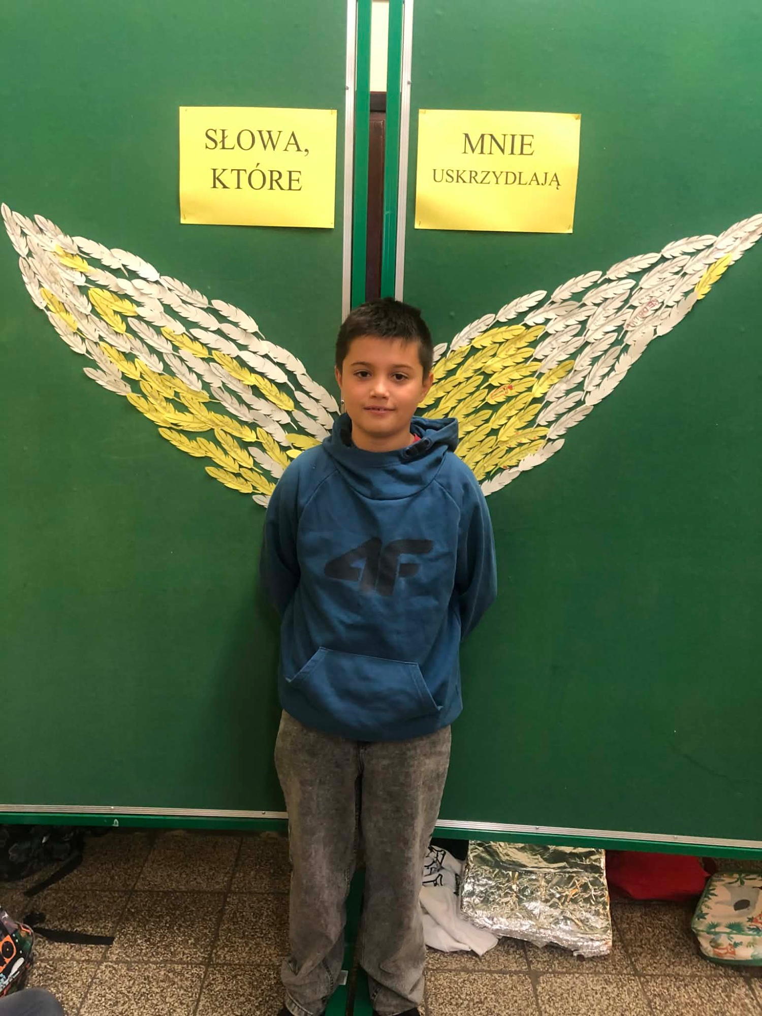 21 listopada w naszej szkole obchodziliśmy Dzień Życzliwości. To święto przypomina nam, że uśmiech, dobre słowo czy drobny gest mogą naprawdę zmienić nastawienie drugiego człowieka. Była to dla nas doskonała okazja, by spojrzeć na świat z jaśniejszej perspektywy i po prostu być dla siebie miłym. W tym dniu została zakończona akcja pod hasłem „Słowa, które mnie uskrzydlają”. Stworzyliśmy skrzydła z papierowych piórek, na których każdy uczeń napisał życzliwe zwroty lub zdania. Były to słowa, które nas wzmacniają i dodają nam sił w codziennym życiu.