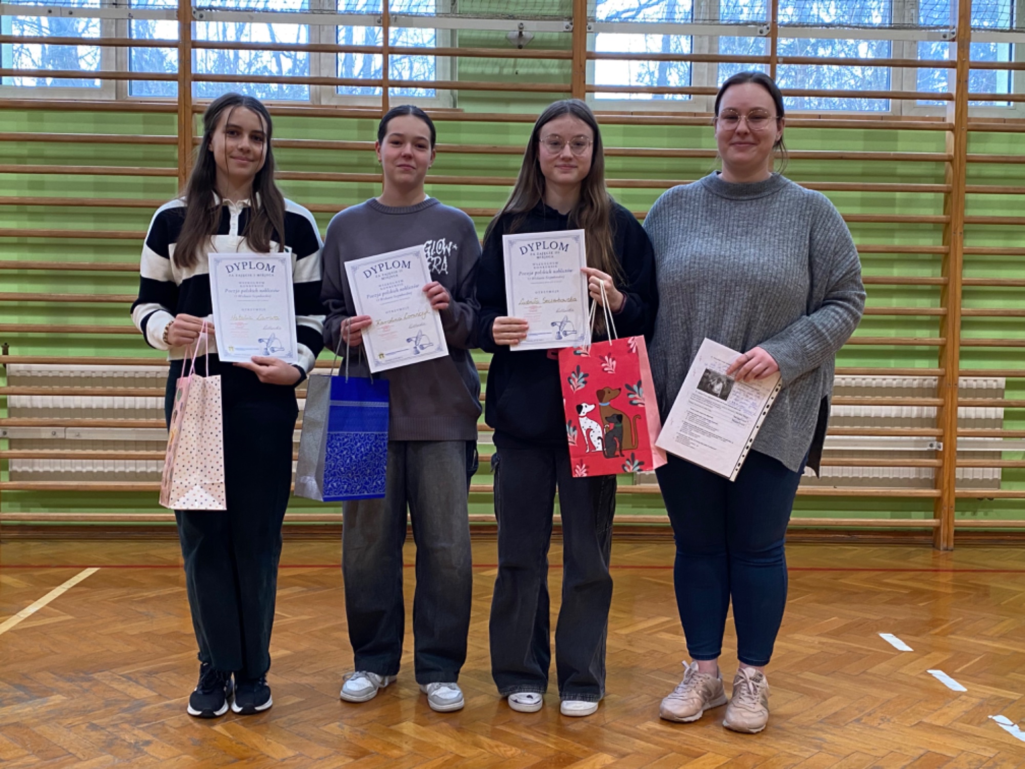 Na przełomie stycznia i lutego, w naszej szkole odbywał się trzyetapowy konkurs o nazwie „Poezja polskich noblistów – o Wisławie Szymborskiej”. Uczniowie klas 6, 7 i 8 musieli wykazać się wiedzą o biografii i twórczości krakowskiej poetki, znać ważne wydarzenia z jej życia, między innymi to, gdzie mieszkała i tworzyła, w którym roku i w jakich okolicznościach otrzymała Nagrodę Nobla, a także, jaką osobą była, co o niej i jej przyzwyczajeniach mówili najbliżsi. W drugim etapie każdy z uczniów, któremu udało się zakwalifikować, zmagał się z interpretacją i analizą jednego z wierszy noblistki. Analiza dotyczyła zarówno środków stylistycznych, formy wiersza, jak i samej jego interpretacji. Uczniowie wykazali się dużą wrażliwością na poezję oraz umiejętnością kojarzenia faktów i związków z życiem samej Szymborskiej. Trzeci, finałowy etap konkursu polegał na recytacji jednego z wybranych wierszy – były to „Kot w pustym mieszkaniu” lub „Chmury”. Laureatkami w konkursie były trzy uczennice: Natalia Larwa z klasy 8, która zdobyła 1 miejsce, Karolina Lorańczyk z klasy 6, która zajęła 2 miejsce oraz uczennica klasy 8, Ludmiła Szczerbowska, która uplasowała się na 3 miejscu. Zarówno wszystkim uczestnikom, jak i zdolnym laureatkom – serdecznie gratulujemy!