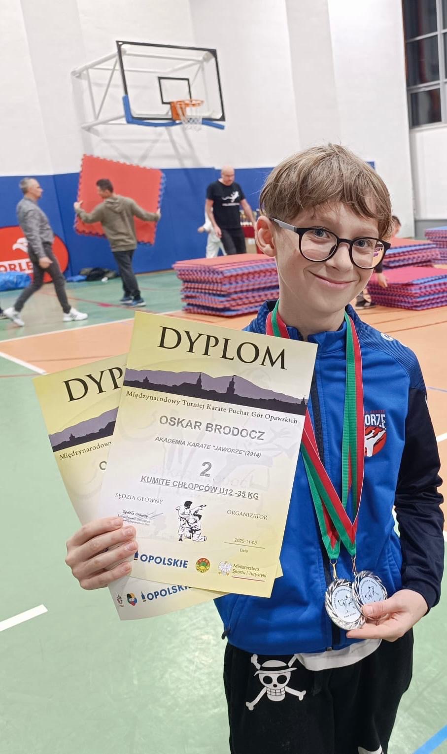 W sobotę, 8 listopada 2025 roku, nasz uczeń Oskar po raz kolejny udowodnił swoje umiejętności, zdobywając dwa srebrne medale podczas Międzynarodowego Turnieju Karate „Puchar Gór Opawskich”.