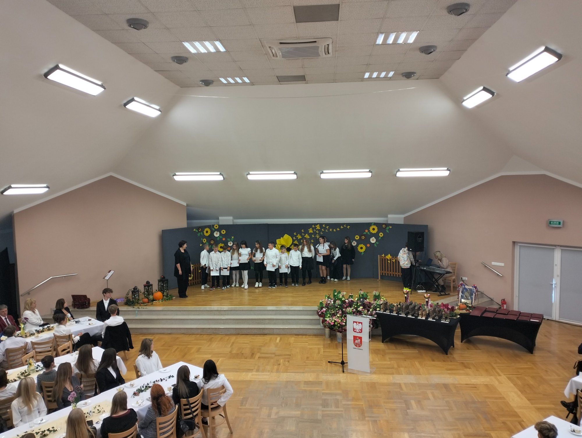 W dniu 23.10.2025 r. nasi piątoklasiści mieli zaszczyt wystąpić podczas uroczystości wręczenia nagród przez Wójta Gminy Jasienica, pana Janusza Pierzynę, wyróżniającym się absolwentom oraz nauczycielom i dyrektorom. W wydarzeniu, które odbyło się w Gminnym Ośrodku Kultury w Jasienicy, uczestniczyła również Śląska Kurator Oświaty, pani Aleksandra Dyla, co dodatkowo podniosło rangę spotkania.